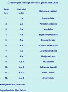 Članovi Vijeća roditelja u školskoj godini 2023./2024.