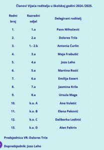 Članovi Vijeća roditelja u školskoj godini 2024./2025.